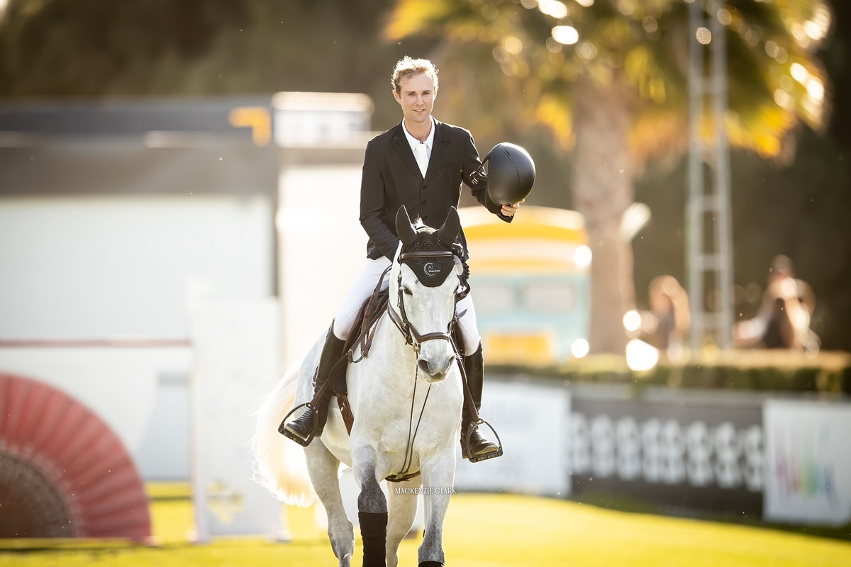 Belgian, Gilles Thomas and the ten year old ‘Chuck Marienshof Z’ by ‘Colestus’ x ‘Emerald’; owned by Stal Marienshof, flew around the 1.50, Ayuntamiento de Vejer de la Frontera Trophy class today, as the second week of the CSI4* here at the Andalucía Sunshine Tour started up. In the main grass arena, David Broome, this pair stopped the clock in 64.31s, ahead of German rider, Kendra Brinkop in 64.99s with ‘MA Belle’ (‘Ugano Sitte’ x ‘Bayard D’Elle’) who took the runner up spot, a repeat of their results last week. These two were the only clears in under 65s today. British Graham Gillespie and ‘Veneno’ (‘Chacco-Blue’ x ‘Baloubet du Rouet’) were third, their second podium place here so far. Fourth was Italian, Ricardo Pisani with another ‘Chacco Blue’ horse, ‘Chacco’s Lawito PS’ and in fifth was Morrocan, Vincent Zacharias Bourguignon with ‘Prince of Bel Air Van Euverbraeke’ (‘Lavallino Ter Klomp’ x ‘Deauville de la Vie’).