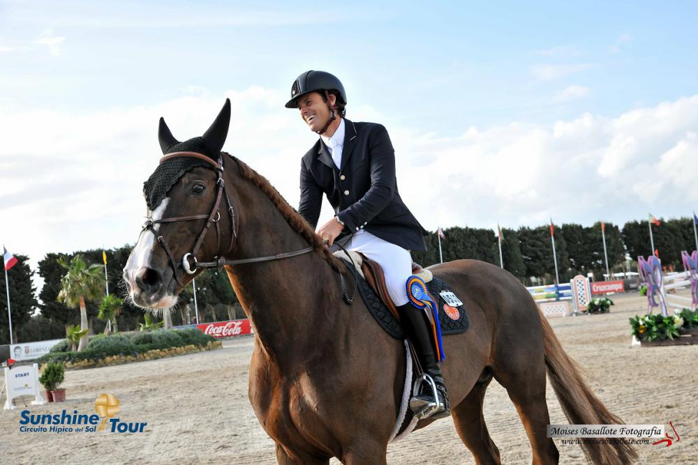 The winner of the Big Tour GP today here at the Sunshine Tour was Brazilian rider Pedro Vennis with Anaya STE Hermelle (Andiamo x Gazelle Blues). The class, sponsored by the Ayuntamiento of Barbate was a qualifier for the Big GP on Sunday. This combination did a cracking clear round in this 1.50m, speed class, beating 144 other riders in a time of 66.70sec. Second place was taken by the Irish rider Gerard O’Neill on Castlefield Vegas; just over a second slower in 67.72sec. In third was the German rider Marcel Marschall on Cassius van de Smis in 68.29sec. The Dutch rider Doron Kuipers on Charley was fourth and the British rider Guy Williams on Dalton D&Hoyo fifth.