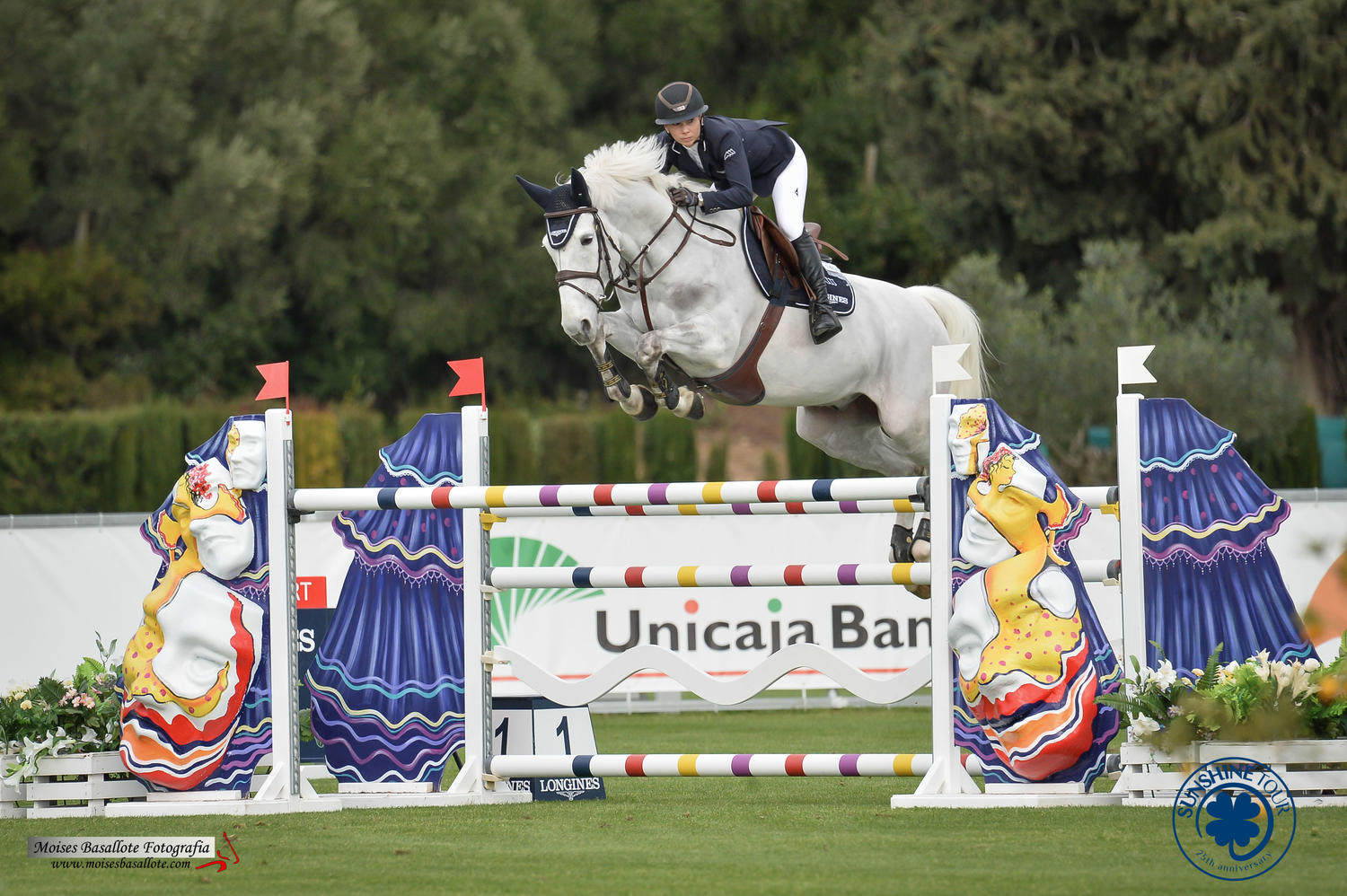 Jane Richard Philips, amazona habitual de competiciones internacionales 5* se imponía en la prueba grande de la primera jornada del Circuito Hípico del Sol con su caballo de 9 años “Fouego de la Crosiere”. Un binomio que tras años juntos se conocen bien, pero que no ha sido sino hasta la temporada 2019 cuando lo han introducido en pruebas internacionales de 1.45m-1.50m de altura. Pontus Westergren y el italiano Filippo Codecasa clasificaban segundo y tercero en una prueba con 25 salidas a pista.