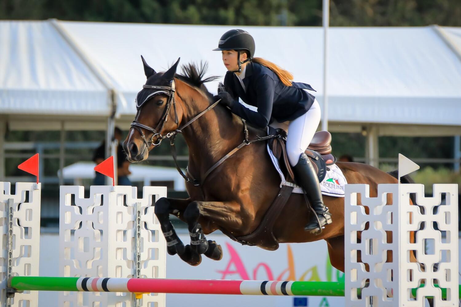 La amazona murciana Sandra Frutos Bednarova se ha proclamado ganadora del Campeonato de España Clásico 1.10 con su yegua de 17 años ‘Quincy de Vill’, un binomio muy compenetrado que lleva ya muchos años compitiendo juntos y que vuelve a demostrar su solvencia. Tras una competición muy regular, colocándose séptima en la primera calificativa, cuarta en la segunda y tercera en la final con tres recorridos limpios, Frutos se hizo con la victoria en el desempate al que salió en último lugar con la tranquilidad del derribo de su único contrincante en la lucha por el oro. Y es que Alejandro Álvarez Suárez salió a pista con ‘Candrea’ firmando un rapidísimo recorrido empañado por un desafortunado derribo.